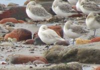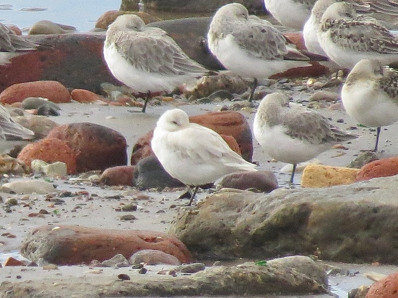It will already be evident that I didn’t do much bird-watching in September. On my way down Range Lane, Formby, on 17th to finish off one of my research projects in the Devil’s Hole, I spotted two Grey Wagtails on puddles. Hardly a rarity but a nice bird to see all the same. The puddles also supported a pair of egg-laying Common Darters. Earlier in the month, I called in briefly at the RSPB’s Marshside Nature Reserve. In front of the main hide were about 1000 Black-tailed Godwits, perhaps recently arrived from Iceland, together with a Little Egret, Cattle Egret and Common Sandpiper. Less welcome were 250 feral Canada Geese and 100 Greylags. I was also concerned to see two large diggers creating a deep, steep-sided trench across the pristine saltmarsh between Marshside Road and Hesketh Road for a distance of about 1.2 km. A friend described it as a “tank-trap”! At a site meeting with the Reserve Manager a couple of days later, it was explained that the ditch was intended to prevent dog-walkers getting to the outer marsh and disturbing breeding and wintering birds. A fly-past Marsh Harrier helped to reinforced the point. Finally, Pete Kinsella sent me a lovely photograph taken on 24th of an almost completely white ‘leucistic’ Sanderling roosting on the shore at Hall Road, Blundellsands. It was also photographed at New Brighton on 3rd December 2024 and 14th February 2025. An almost identical Sanderling was recorded in Hampton Beach State Park, New Hampshire, USA, on October 29th 2019. Could it be the same bird?